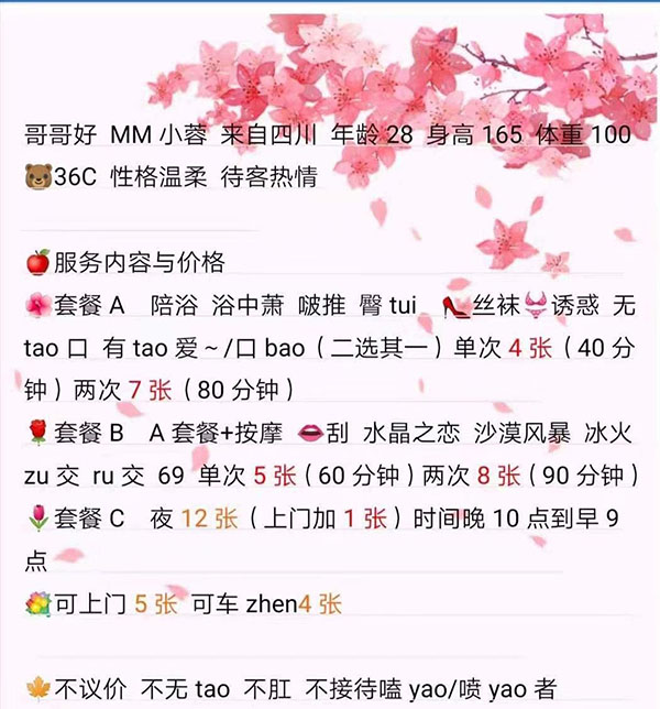 去年加了此女,最近又回到泰州,年纪差不多30,身材丰满,皮肤雪白,服务也可以。总体70分吧。吹做,也可以慢慢调情。