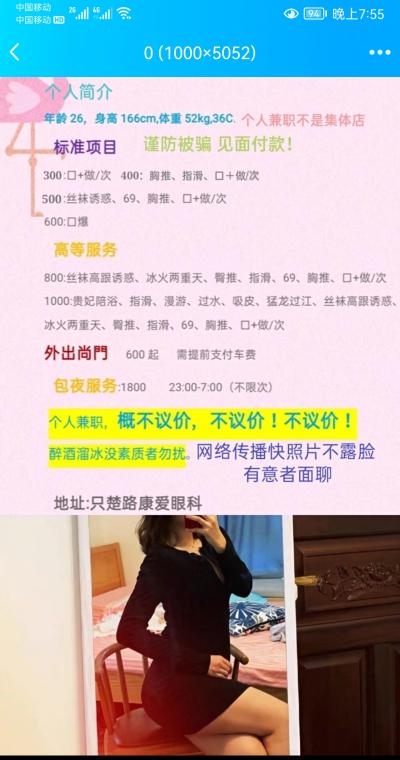 兼职,一般白天在。正常就是五六点吧,如果来的晚的话提前跟她说,人长得和照片八分像吧,没那么白,偏瘦,,但也算中偏上了。主要是服务态度好,口活时间长,做得很认真,配合度还不错,所以服务挺不错的
