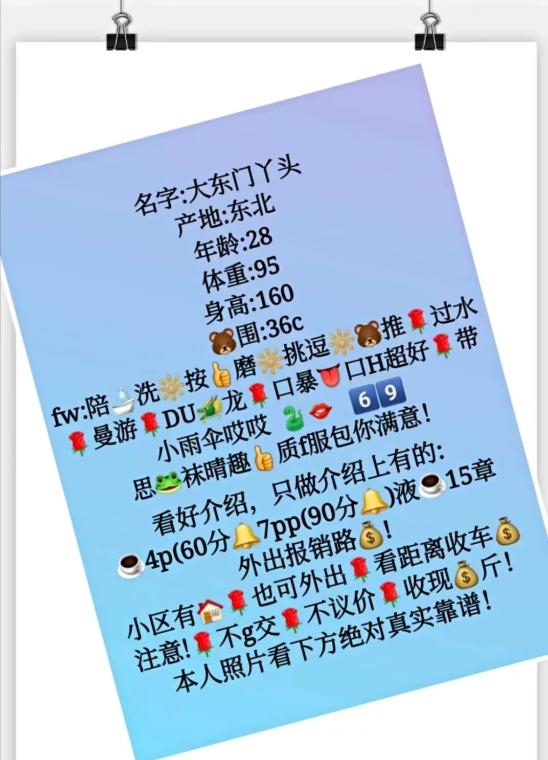 狼友们注意,此女人照不符,年纪不小了,服务非常机车,不断催,介绍上服务全面,实际简单吹两下就催,别的服务一概没有,照片很白,实际长的比较黑,而且隆的假胸,硬邦邦,朋友圈发的视频,都是合成的假视频(最近朋友圈里好多都是这种短视频,头像是自己的,但身体都是别人的,我也不知道用的什么软件),总之,我去了一次踩雷,是拉黑了,提醒狼友们慎重,防止踩雷!