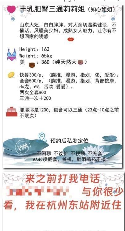 莉莉姐是杭州的老人了,加了也挺久的了,上周过去预约体验了一下,巨乳巨臀的微胖熟女,服务很耐心,老师特色是三通,不过我不喜欢就没体验,300一次的价格性价比很高,在杭州也算很便宜了,总的来说适合喜欢熟女服务控类型的狼友过去泄火,后面再去杭州也会返食