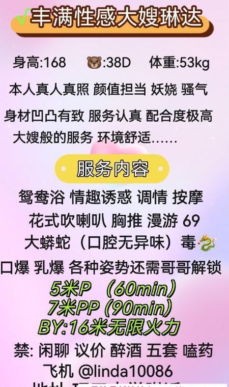 琳达老师就是琳达老师久闻名号少妇服务控的天花板一进门就是大蟒蛇招待不断的在身上蹭来蹭去拉着你的上一个劲儿往胸里放眼睛不断眉眼拉丝了都鲍鱼剃的干干净净颜色也不深D奶的加持全裸洗澡所有的项目一个不少空调温度专门调的比较低两人互动温度适中前面后面各种半套会所的技能展示日感很好润叫床也不错各种姿势也愿意配合满墙的丝袜皮肤自己挑选和你聊天也不会冷场一冷场就摸你作为少妇喜欢的人自然是相当喜欢喜欢服务控的没问题冲就是了少妇服务成都看成华成华看理工大理工大看东城