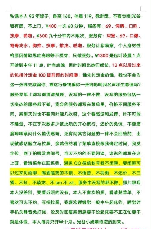 过年开课的老师真的很少,问了几个妹子不是不回话就是说已经回老家过年,终于还是被我找到有过年不打烊的妹子,她说过年开课的妹子不多生意肯定好,想趁这时间努力多挣点。看了妹子课表和照片觉得还过得去,至少不是什么大妈级别的,课表上写的服务也挺多的,跟妹子约定好时间,坐地铁前往光谷,到了地方,妹子要我拍照确定我是到了才告诉我楼层和房间号,妹子的警惕性很高呀!进门以后,看妹子和照片上的没啥区别,就是稍微胖点,但是很有轻熟女的感觉,房间环境干净整洁,也非常温馨,像回家的感觉,先洗澡,会帮忙搓澡,然后用一次性床垫,一次性浴巾擦干,接着按摩调情,全裸着上身在身上各种摩擦,老爽了,妹子服务做的很认真,不得不说熟女的活就是不一样,妹子的姿势也很多,会配合,没一会我就交代了,平时我是比较慢的,但是妹子的服务和口活着实是可以的,400服务了差不多一个小时,性价比还是挺高的。