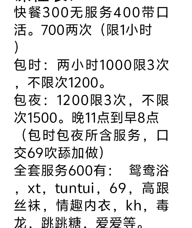 服务项目:     包夜:1200