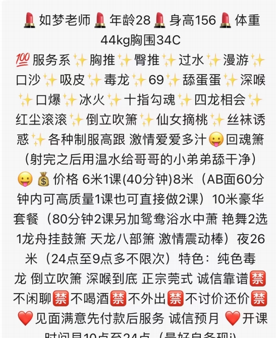 服务项目: 毒龙 倒立吹箫 艳舞 菀式服务