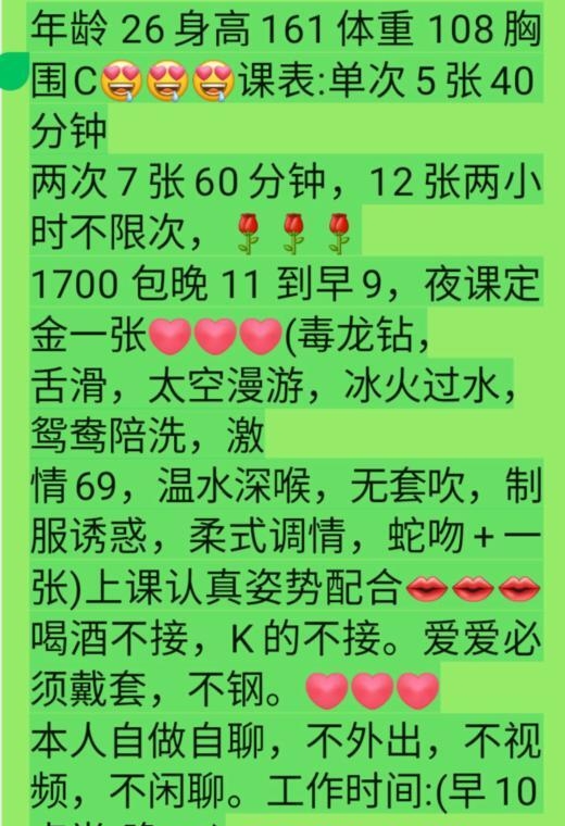 一进门你就会被小姐姐的一对大胸吸引,天然大胸不下垂,胸型贼好,而且真的腰细,腿长,屁股翘,真真正正的漫画身材。小姐姐口活一绝,嘴巴吸力只强悍,生平少见。且小姐姐巨骚无比,骚话一套一套的,且呻吟婉转,让人欲罢不能。推荐背枪,巨爽。