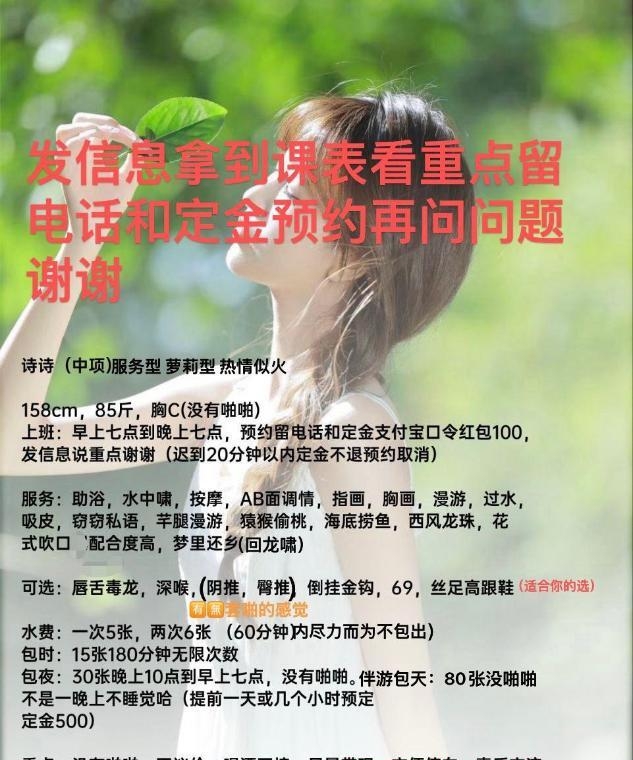 包夜3000,人照一致,半套,69 dl 深喉 水中萧课表为准,线上高冷,线下主动热情不赶时间,睡觉的时候主动搂着睡,服务过程很舒服,会问有什么不适没有,情绪价值拉满,个人不催钟,强烈推荐,有机会二刷