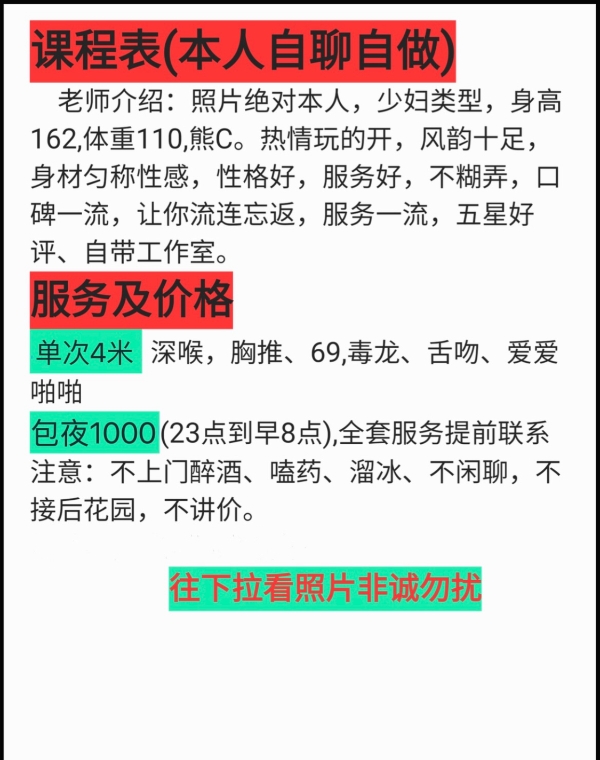 照片看着就是丰满,联系过去和照片差不多,价格也是这个价格,还是非常靠谱的,简单冲洗下就开始服务,服务基本上就课表上那些,做的服务不多,就口活,波推这些还不错,做的时候让她换姿势也配合,这个价格总体来说性价比还不错,对要求不高追求卸货的可以闭眼冲,在上海这个物价横飞的时代,这价位的不多了