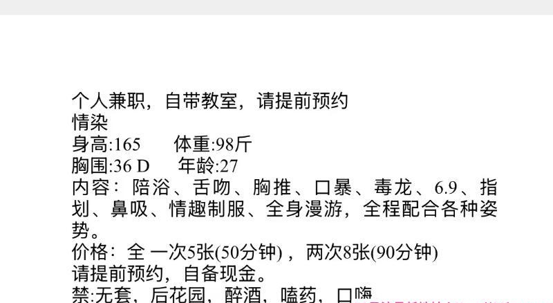 照片看着就是丰满,联系过去和照片差不多,价格也是这个价格,还是非常靠谱的,简单冲洗下就开始服务,服务基本上就课表上那些,做的服务不多,就口活,波推这些还不错,做的时候让她换姿势也配合,这个价格总体来说性价比还不错,对要求不高追求卸货的可以闭眼冲,在上海这个物价横飞的时代,这价位的不多了