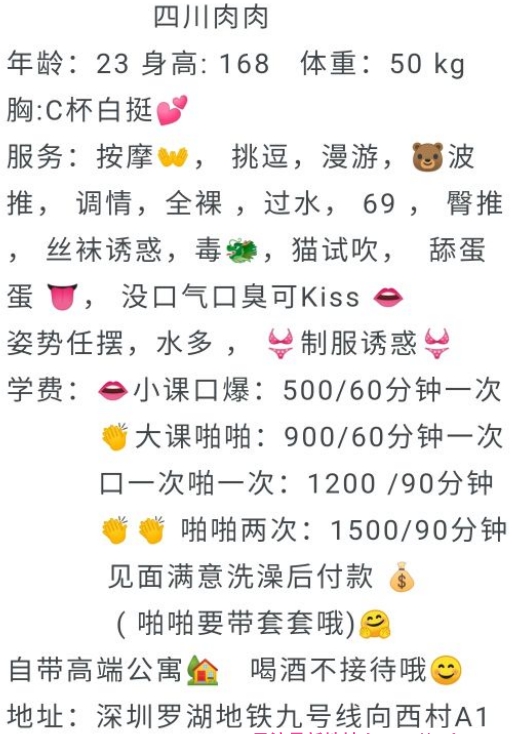 川妹肉肉 ,身材高挑林概168左右,肤色较白,进去坐下简单了情况,说课程表上有的都有,感觉还OK,就帮脱衣换鞋拉着去洗了个鸳鸯澡,完全不用自己动手,洗到下面还主要蹲下口了一会,洗完擦光,到床上后,衣柜里面摆满了各种不同情趣内衣制服,我随便挑了件粉红色的,叫她穿上,开始步入正题,急不可待的就上下其手,先漫游、过水,那感觉真给力。给我小弟做了胸推,推的我欲火焚身,再给来个毒龙,在给我小弟口,不像我之前找的口还带膜,看着都不舒服了,终于找到服务好的,啪啪的时候这种身材的水量不用多说了,屁股沟都是水,玩得比较开,喜欢的可以放心冲。