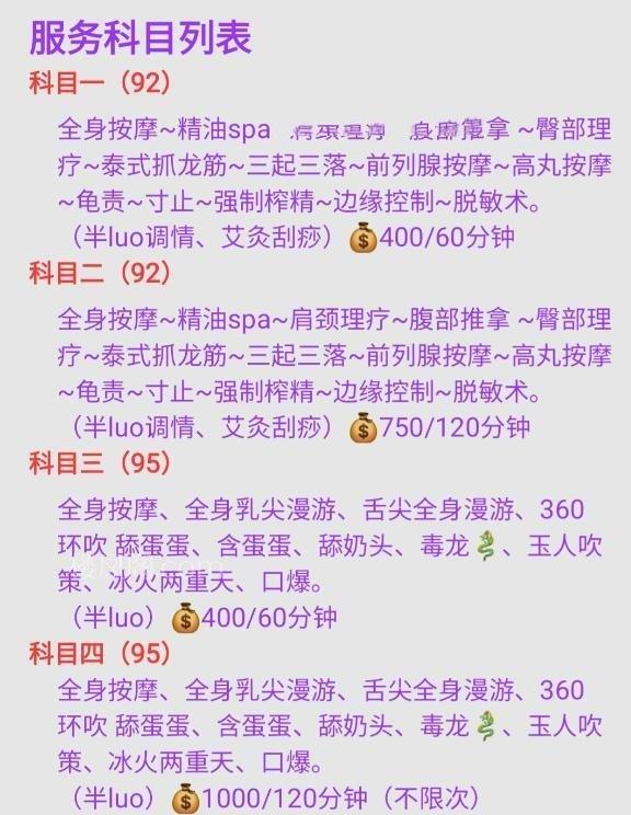 服务项目: 抓龙筋 按摩spa 波推 毒龙 口爆