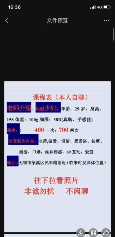 在51刷到的,当时已经戒欲1个月,实在忍不住了就找了这个姐姐,700可以2次,卸货专用啊!根据小姐姐指挥到达梁溪区民丰附近,后来才知道小姐姐是开了一个类似工作室的地方比较安全。小黄文就不写了,总体来说姐姐服务很用心,写的服务都会做,关键是真实惠,文叔叔普通都要600起,还没姐姐服务的多,做完付完水费后走人,还会二刷泄火必备
