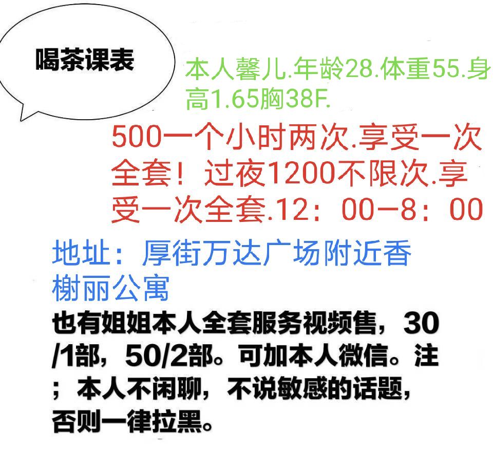老师自聊自做,上班时间中午10点到晚上12点。服务系,温柔体贴,配合各种姿势,不催不机车。5张2次,性价比高,泻火首选。