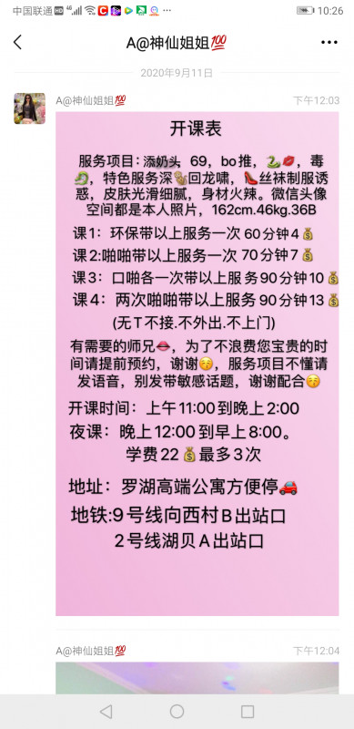 课费:(4 米一次 7 米两次 包夜十二点到早上八点 15 米不限次)可外出,