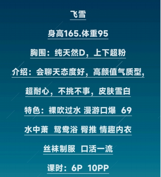 今天约了一个,小野雪梨,服务周到,像温柔的小猫,环境也让人心旷神怡。年轻,皮肤吹弹可破,玉骨冰肌   老师的地方并不难找,一溜烟的功夫上去后,一进门便看到性感尤物。两个小白兔蹦蹦的好像要跳出来。老师舌头犹如轻盈的舞者在我身上跳舞,跳着跳着就包裹住了弟弟。口技很好,差点没忍住。身上很香,闻着很舒服。而且还会叫老公。对了还可以拍照片