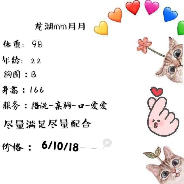 长相可爱,论长相 可以称的上是美女类型 五官标致 气质好 温柔中有点骚 挺会聊天的主动又热情 玉体级别 三点粉嫩的不行 胸部也发育的不错 口活越口越深 让人恋恋不舍 听说是大学生 平时上网课 偶尔出来兼职