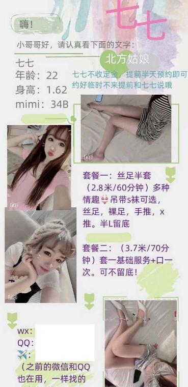 很久之前去约的,就在李家沱附近,小姐姐长相普通,但腿很细很长,脚很漂亮,恋足的兄弟可以直接冲。只有半套哦且不口,只能亲脚其他地方不能亲的,摸除了bb都能摸,210一次足,320一次足一次手,恋足的兄弟可以无脑冲