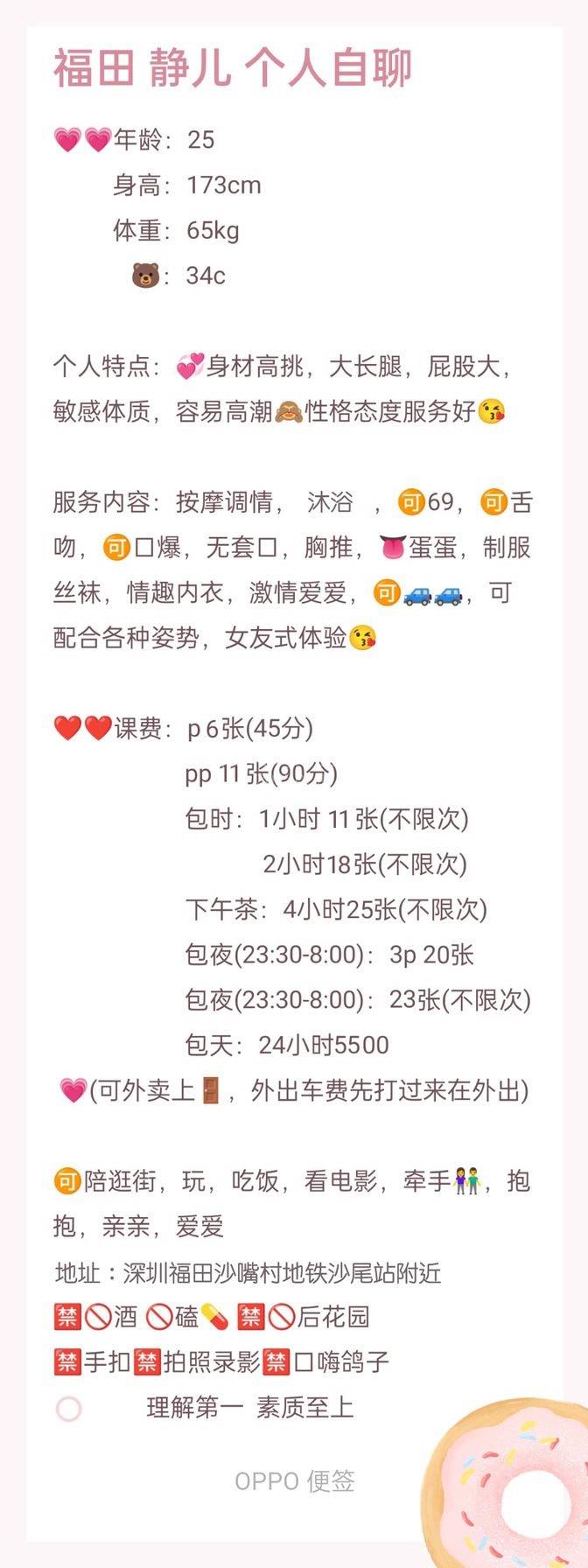 服务项目: 按摩,臀推,舌吻,吹箫,六九,口爆,深喉,丝袜制服,颜射