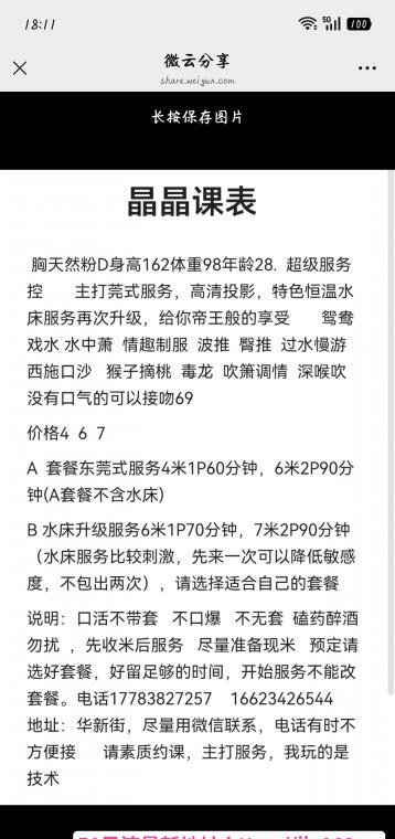 去广州约的一个妹子,颜值身材都不错。菀式服务流程口活好会舔会深喉波推会夹胸大包裹性好,下面很紧很贴合水多很过瘾一水过后意犹未尽,又加了二水,妹子给我按按身子聊聊天,然后就开始了二水,二水吹喇叭很仔细,眼神还勾人一看就是来劲了,一阵折腾,叫声不断,加速打桩,两人双双高潮。体验不错,兄弟们可以尝试一下。