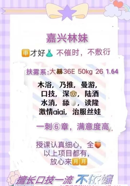 看到林妹老师的评价都这么好,今天也抽空去体验了一下,确实很满意,所以给老师推广一下,老师课本上的每一项服务都做的特别认真,很会调情,特别是口的时候,老师的舌头太厉害了,感觉舌头像在跳舞,真的很舒服,口活棒棒的,确实是扛不住,直接上位卸货,值得推荐给狼友们