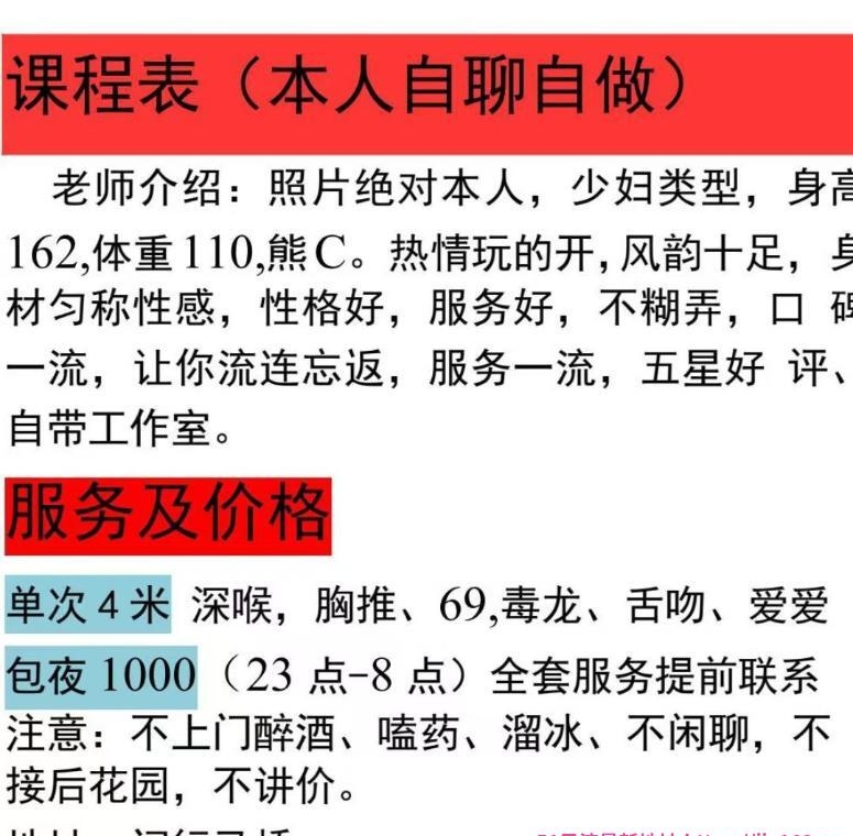 服务项目: 深喉 胸推 69 毒龙 舌吻 爱爱