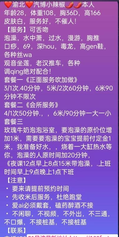 看她胸大屁股大一直都想去找她,可惜离我太远了,今天刚好来这边,想起她直接过来了, MIM年纪30左右,具体不确定,不过还算可以,颜值一般,主要是和其它做服务的MM比的,身材可以,大胸,大屁股,也不肥,硬件80分.比主流桑拿服务80%的MM要好,态度也不错,应该刚刚从桑拿转战QM,做的是 300,加一百可以体验无套,服务可以,细节不多说了,也是那些,啪啪有水,会夹,很配合,女上波上下遥,会主动捉我手去摸她胸,特别后入屁股有肉,啪啪声很大,会根据我的力度配合着叫床,最后正常位下面在插,看着胸在上下摇,MM闭着眼睛轻咬着唇,发发轻轻呻吟声,很有感觉。性价比很高,值得试试