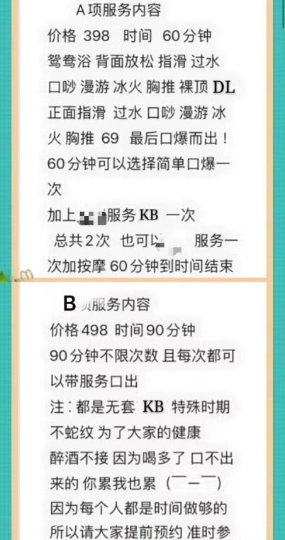 服务项目: 共浴 69 胸推 臀推 漫游 冰火 按摩