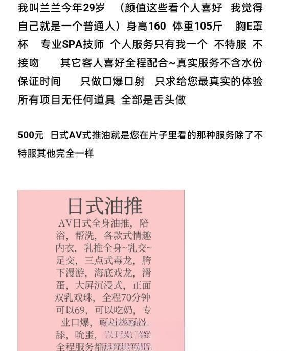 服务项目: 大胸妹水床SPA全身推油日式服务胸推臀推阴推