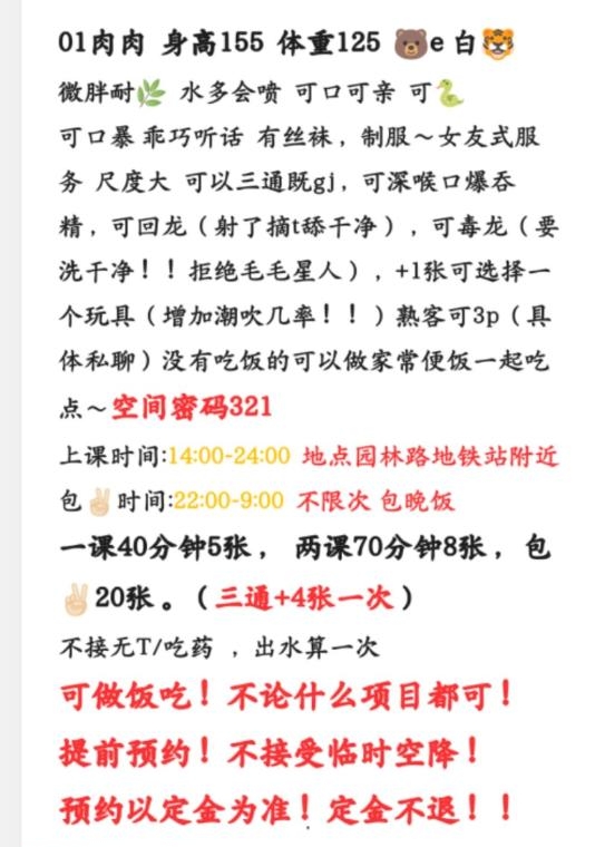 服务项目: 口爆 回龙 舌 陪浴 毒龙 按摩 丝袜制服 可以sm