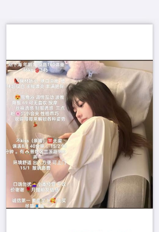 照片看着就是丰满,联系过去和照片差不多,价格也是这个价格,还是非常靠谱的,简单冲洗下就开始服务,服务基本上就课表上那些,做的服务不多,就口活,波推这些还不错,做的时候让她换姿势也配合,这个价格总体来说性价比还不错,对要求不高追求卸货的可以闭眼冲,在上海这个物价横飞的时代,这价位的不多了