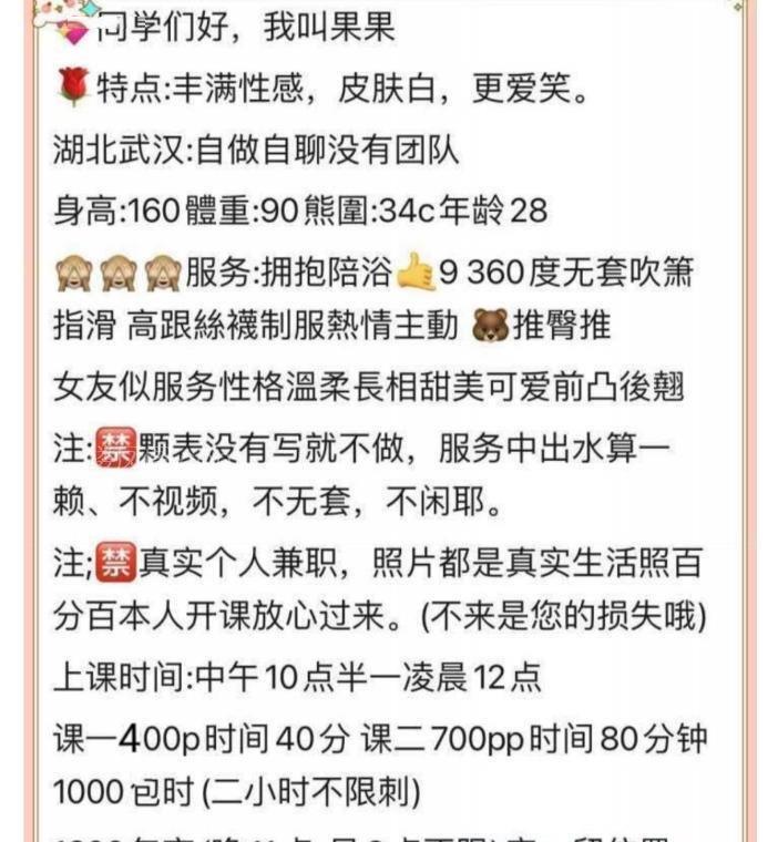 经常出差武汉,这次来约客户下午谈工作比较顺利,时间很充裕就想着临时出击一下,问了一圈只有这位果果老师有空。打车过去遥控上楼,环境很安全。进门一看没踩雷,照片有美颜但不多,就跟老师说上两课。老师很热情先去拿水拿毛巾,随后进来浴室帮洗帮擦,完事进房间老师让挑战衣,选了一套黑丝高跟制服让换上。服务的时候手法很好,胸推臀推很带感,口的时候爽上天被秒了。休息时间边聊边摸,老师语气温柔不冷场。温存了一会,在老师的轻拢慢捻之下二弟逐渐复苏,老师的360度口让我二弟直接封顶,接着老师带上小雨伞开始女上位,又深频率又快,也就是第二课,不然有被秒了。主动要求换我自己来动,换了几个姿势,摸着乃乃坚持了几分钟就卸货了。老师人热情健谈服务好,性价比又高,有机会继续返食。