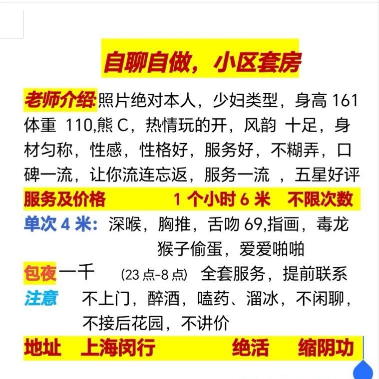 照片看着就是丰满,联系过去和照片差不多,价格也是这个价格,还是非常靠谱的,简单冲洗下就开始服务,服务基本上就课表上那些,做的服务不多,就口活,波推这些还不错,做的时候让她换姿势也配合,这个价格总体来说性价比还不错,对要求不高追求卸货的可以闭眼冲,在上海这个物价横飞的时代,这价位的不多了