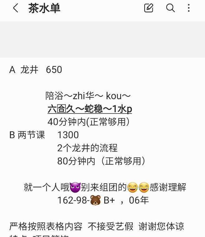人照差距不大,年轻,玩得开。进门问她,服务做的好么,来了一句,69和舌吻管饱,其他的她尽力给我好好弄,一句话给我笑死了。人比较热情,爱聊天。课表我挂出来了,服务比较细致,啪啪比较配合。很满意的体验。个人建议快点洗澡,多留点时间做69和接吻,很推荐这两个项目,慢冲磨磨时间,再舌吻快冲交货,很酸爽。她呆到6号回家过年,喜欢解锁冲。