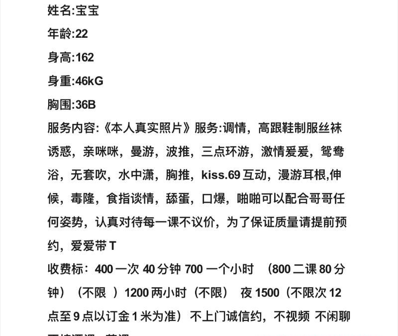 可以说我的老相好了,去了已经数不清多少次了,要身材有,要颜值也不错,要服务也有,性价比还高,上半年还是中介带着她,现在自己出来单做了,没有中介了,性价比更高了,服务做的非常细致,啪啪的时候非常投入,我是那种吃服务➕投入的,女方越投入我越持久,一般快餐那种我就123结束,只有跟她可以很久,她也不会催,昨天刚去完,走的时候忘记了给钱,她说下次来再给,大家就知道服务多好了,喜欢服务又喜欢颜值身材的必去,具体过程就不写了,洗澡啥的都有,