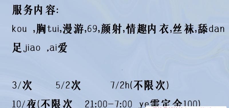 服务项目: 按摩 六九 胸推 吻等