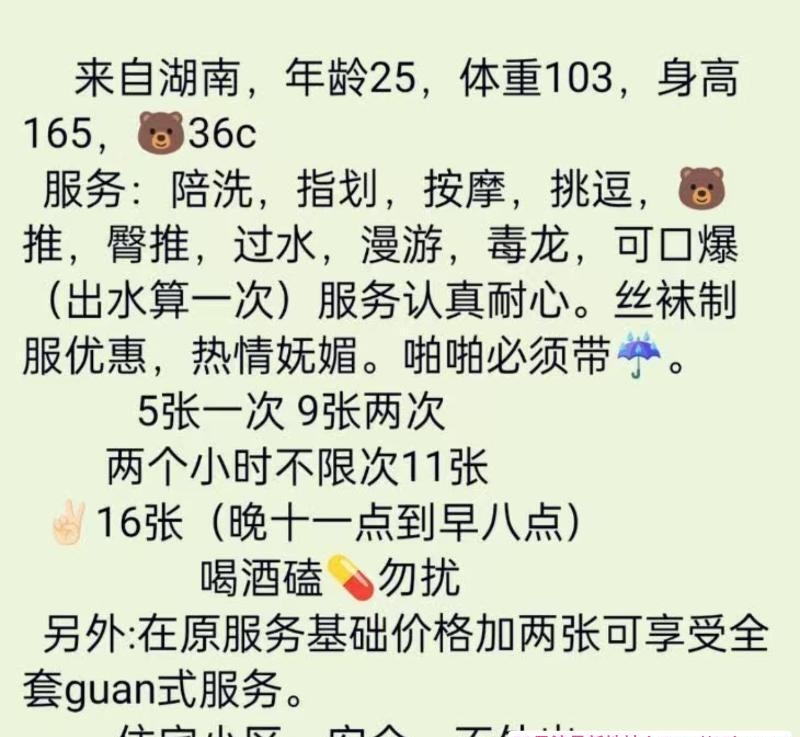 服务项目: 陪浴 指划 按摩 胸推 过水 漫游 毒龙