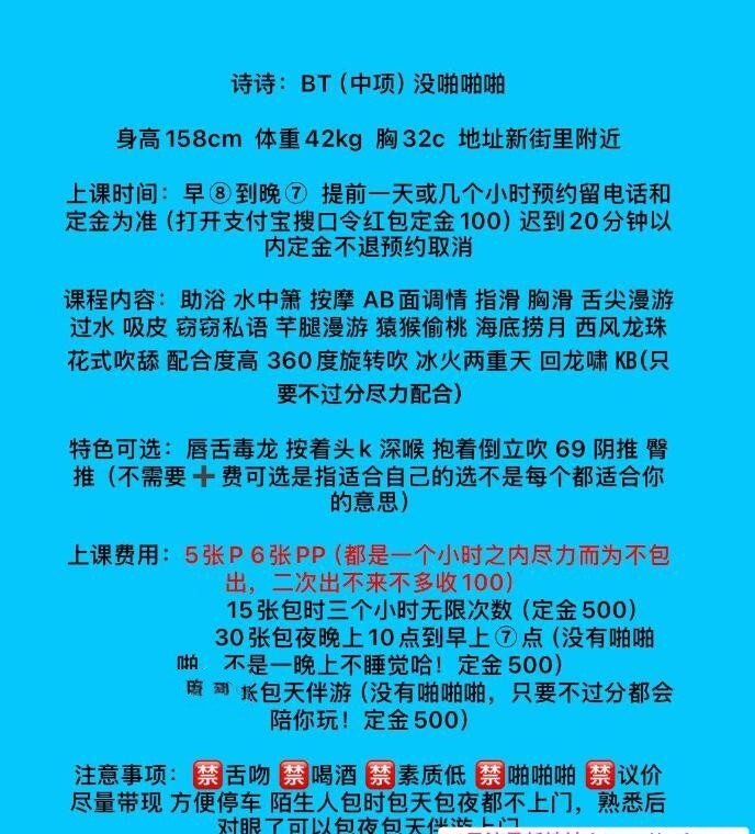 服务项目: 助浴放松按摩花式调情各种吹箫舔毒龙69深喉回龙啸水中啸倒挂金钩KB……